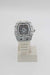 Color: Skeletonized dial with black and white details - Material: Carbon fiber and titanium - Indexes and hands coated with luminescent material